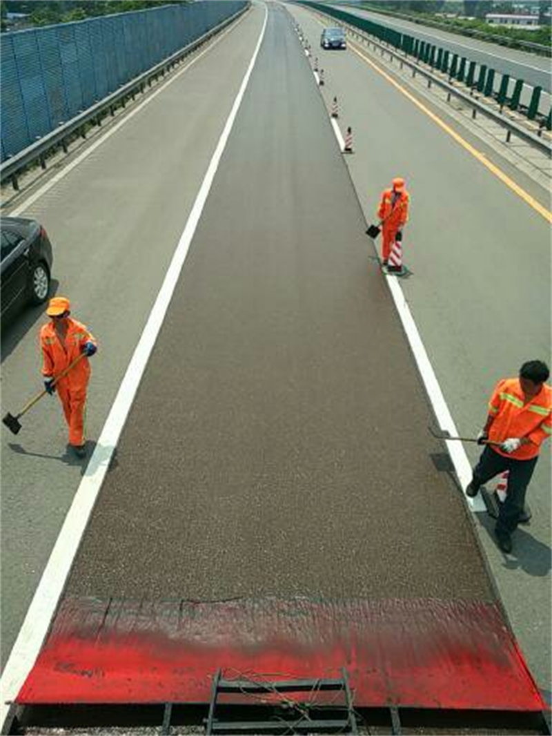 應(yīng)用范圍:     砂封層主要應(yīng)用于高速公路,一、二級公路瀝青路面的預(yù)防性養(yǎng)護。可以進行美化路緣、路肩施工。經(jīng)過砂封層施工后可以改變新舊路面的外觀及顏色。施工說明:砂封層是一種層鋪的施工工藝。采用同步碎石封層設(shè)備將聚合物改性粘結(jié)材料和骨料金剛砂同時撒布施工的一種施工工藝。粘結(jié)材料應(yīng)選擇高濃高粘且具有一定滲透型和還原性。骨料需選擇耐磨的金剛砂。技術(shù)特點:(1)常溫施工,無需加熱,節(jié)能環(huán)保。(2)用來解決瀝青路表面瀝青老化出現(xiàn)的貧油狀況。(3)解決原路面出現(xiàn)的麻面、松散掉粒、輕微裂縫等現(xiàn)象。(4)新路面可以起到防水的作用。(5)增加路面摩擦系數(shù)和耐磨性能。施工工藝:封閉交通→清理路面→病害處理→砂封層施工→養(yǎng)生→開放交通